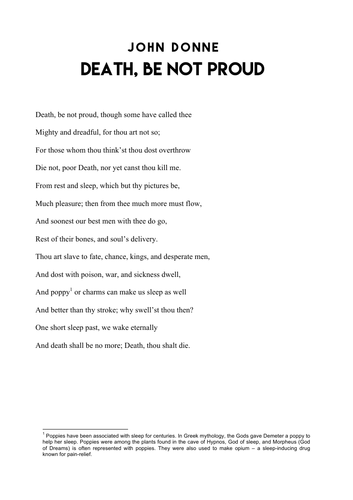 Death Be Not Proud John Donne Teaching Resources